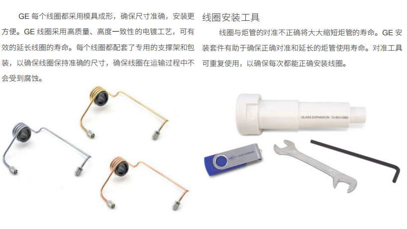 GE 每个线圈都采用模具成形,确保尺寸准确,安装更方便。GE 线圈采用高质量、高度一致性的电镀工艺,可有效的延长线圈的寿命。每个线圈都配套了专用的支撑架和包装,以确保线圈保持准确的尺寸,确保线圈在运输过程中不会受到腐蚀。