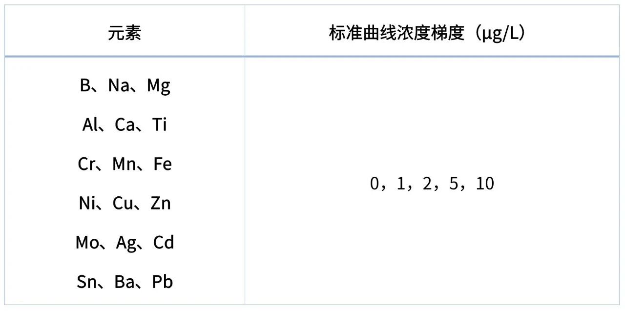 采用标准加入法,标准溶液中元素浓度如下: