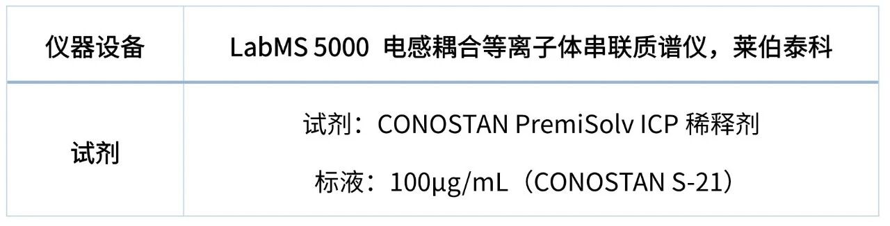 本实验中,无需繁复的样品前处理,直接加入CONOSTAN PremiSolv ICP稀释剂,混匀后作为样品。
