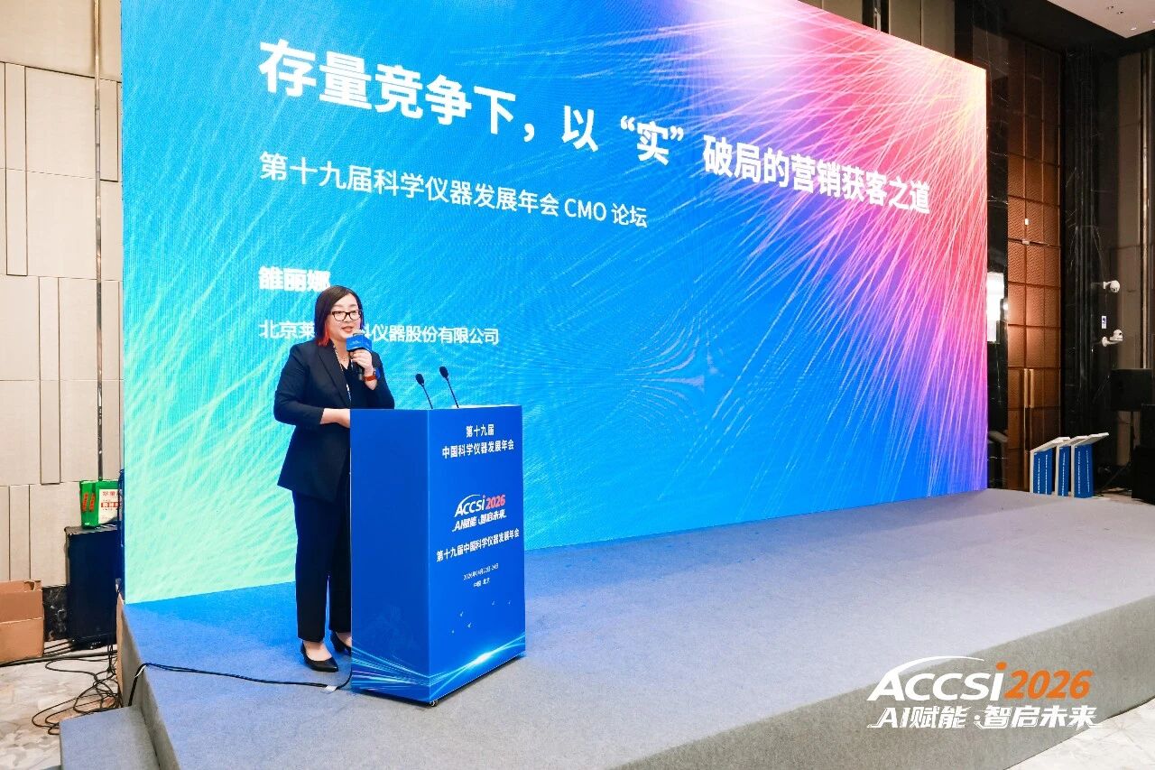 ACCSI 2026期间,莱伯泰科市场部经理雒丽娜受邀出席 CMO 论坛,并发表《以“实”破局的营销获客之道》专题报告。报告直击行业“流量红利终结”与“供需错配”的痛点,提出市场部应完成从“品牌宣传”到“客户成功部”的角色飞跃。结合 13 年实验室实战视角,她分享了莱伯泰科“方案实、内容实、投入实”的营销哲学:拒绝空洞的参数堆砌,通过全流程方案解决客户真实需求。莱伯泰科坚持回归营销本质,用专业实战数据在存量竞争中突围,构建品牌护城河。