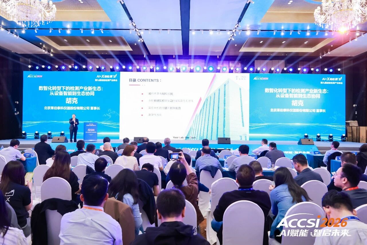 在 ACCSI 2026 期间,莱伯泰科董事长胡克博士受邀出席“第九届检验检测产业峰会”,并发表题为《数智化转型下的检测产业新生态:从设备智能到生态协同》的主旨报告。胡克博士指出,实验室智能化的核心在于样品前处理、分析仪器与自动化体系的深度协同。他强调,为实现“准、快、省时省力”的实战目标,仪器企业应发挥技术攻关的主导作用,并积极与检验检测机构开展深度合作。报告中,胡克博士展示了莱伯泰科的全链条创新优势,并以微塑料整体解决方案为例,具象化呈现了公司在一体化方案领域的深厚积淀。展望未来,莱伯泰科将持续以智能技术赋能检测产业,携手行业伙伴共筑高质量发展新生态。