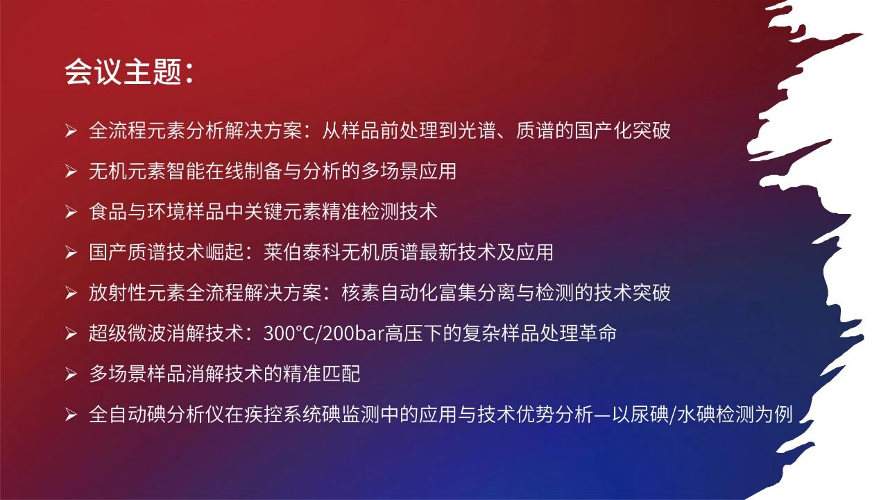 我们诚挚地邀请您参加莱伯泰科“元素分析整体解决方案全国巡回技术交流会”,期待在这7座城市与您相遇,共同探索无机元素分析的新高度!