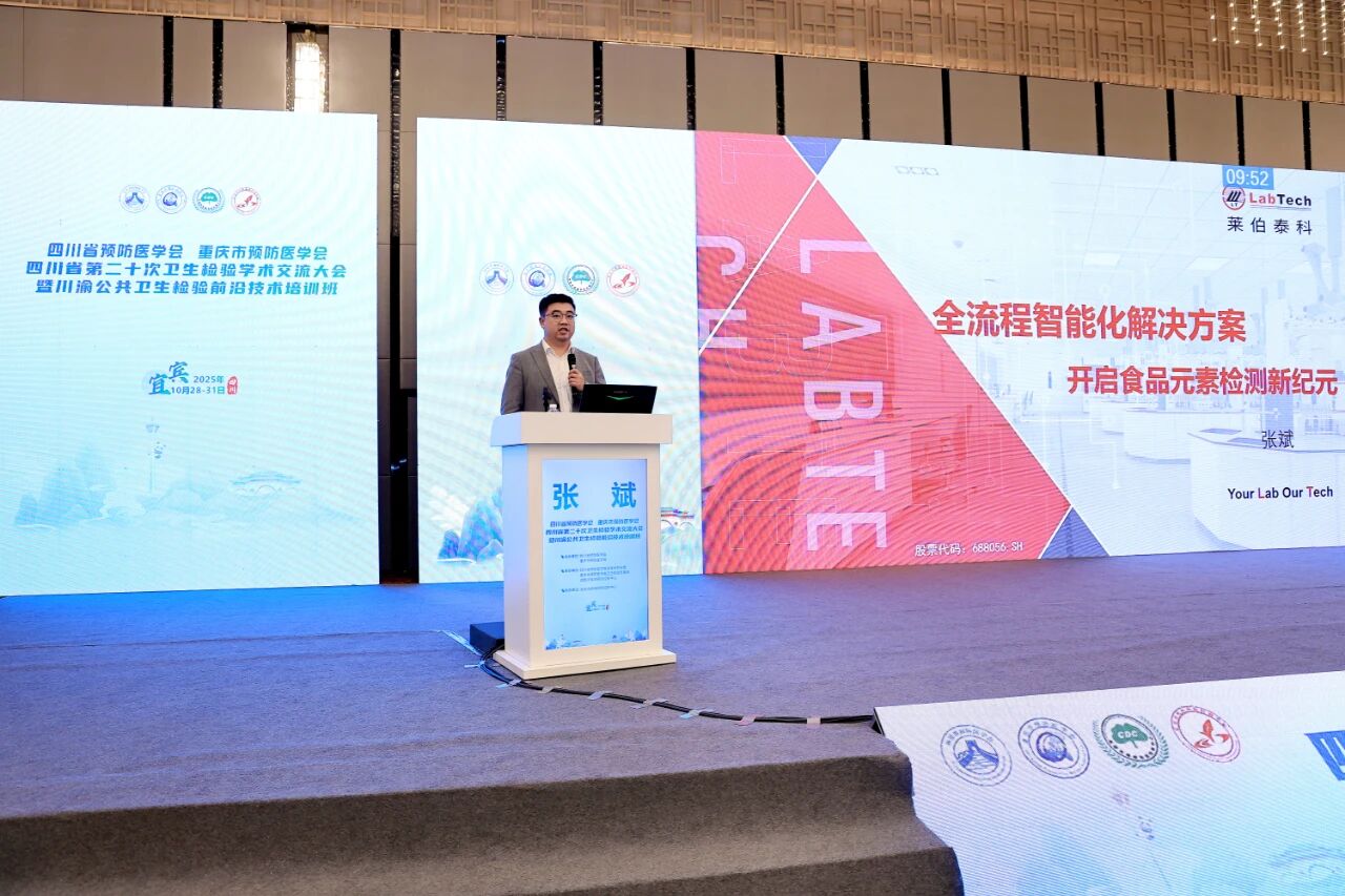 会议期间,莱伯泰科携两款核心产品亮相技术展区,并由销售经理张斌先生作《全流程智能化解决方案,开启食品元素检测新纪元》主题报告。报告重点介绍了公司针对卫生检验场景开发的自动化设备如何优化实验流程、降低人为误差。